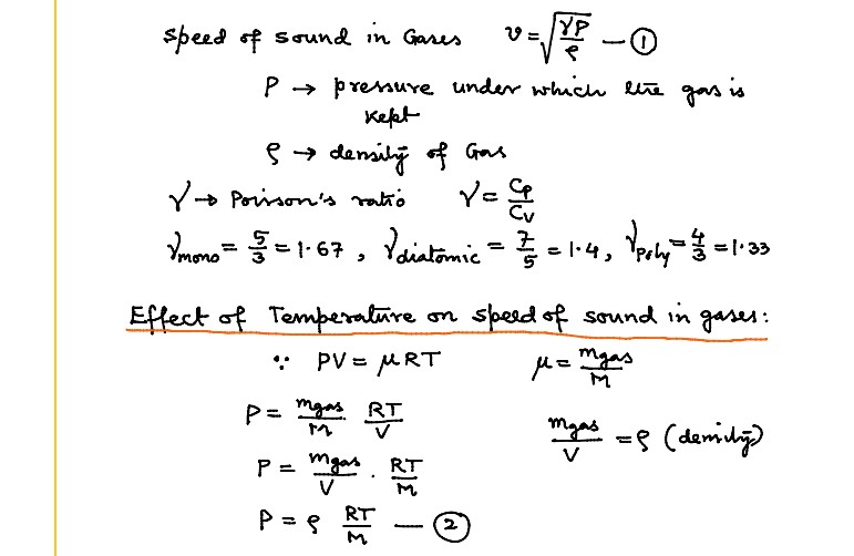 Effect of Temperature, pressure, density, humidity etc. on speed of sound